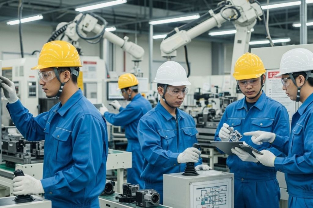 Pekerjaan permesinan di Jepang meliputi pengoperasian, perawatan, dan pengawasan mesin produksi dengan standar kerja yang teliti, presisi, dan profesional.
