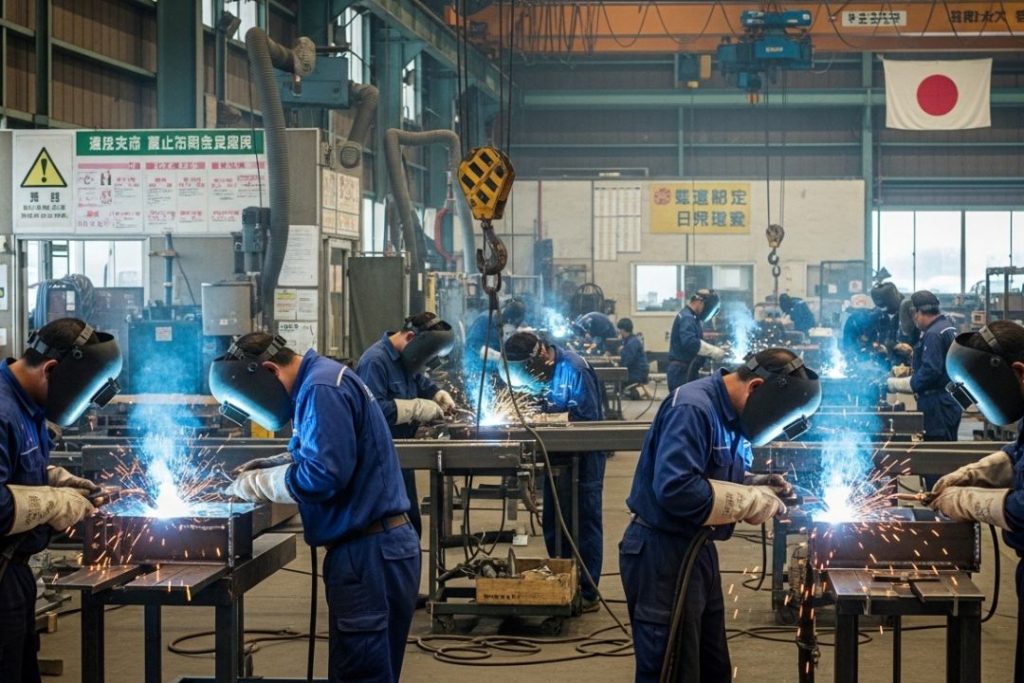 Pekerjaan pengelasan di Jepang meliputi penyambungan dan perbaikan logam menggunakan teknik las dengan standar kerja yang presisi, aman, dan profesional.