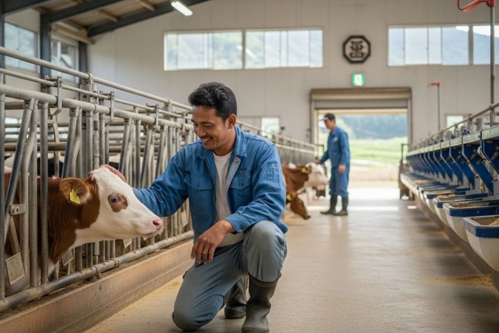 Pekerjaan peternakan di Jepang meliputi perawatan hewan, pemberian pakan, serta menjaga kebersihan dan kesehatan ternak dengan standar kerja yang disiplin dan teratur.